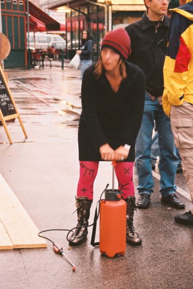 Der Text entsteht in einem offenen Prozess zwischen Künstlerin, Marktbesuchern und Schaulustigen teilweise geplant, teilweise spontan.